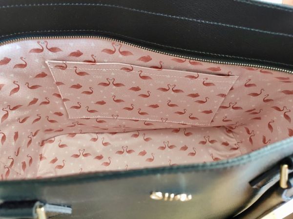 Business Tasche, OhlalaArt.Nr.: 32684 Material:LederFarbe:schwarz, Innenfutter wahlweise Flamingos oder rose mit weißen PunktenWare:neuPreis: 79€